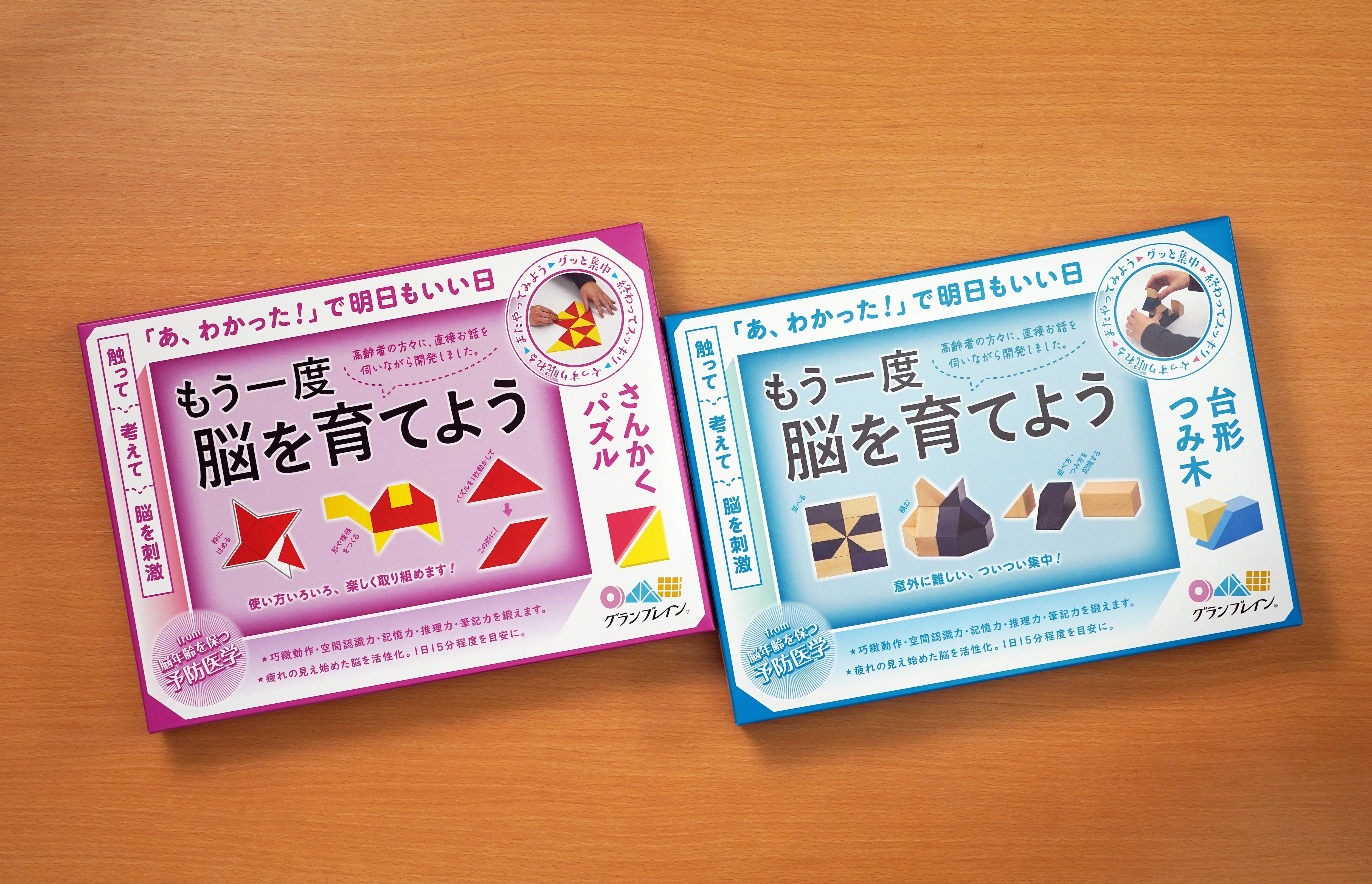もう一度脳を育てよう「さんかくパズル」と「台形つみ木」のセットです。